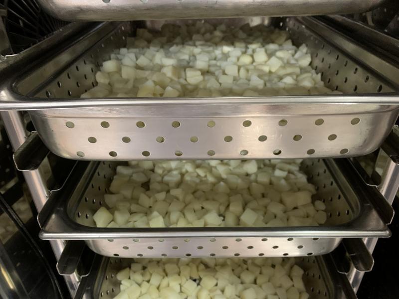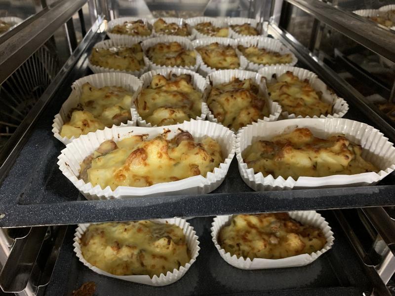 今日は、ポテトのみそマヨ焼きを作りました。角切りにしたじゃがいもを蒸し、野菜やウインナーを炒めて味付けしてから混ぜ合わせ、グラタンカップに入れ、シュレッドチーズをのせて、蒸し焼きします。マヨネーズの酸味で、意外とあっさりと仕上がります。