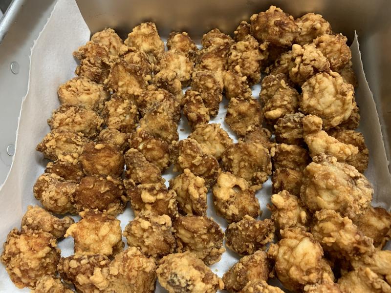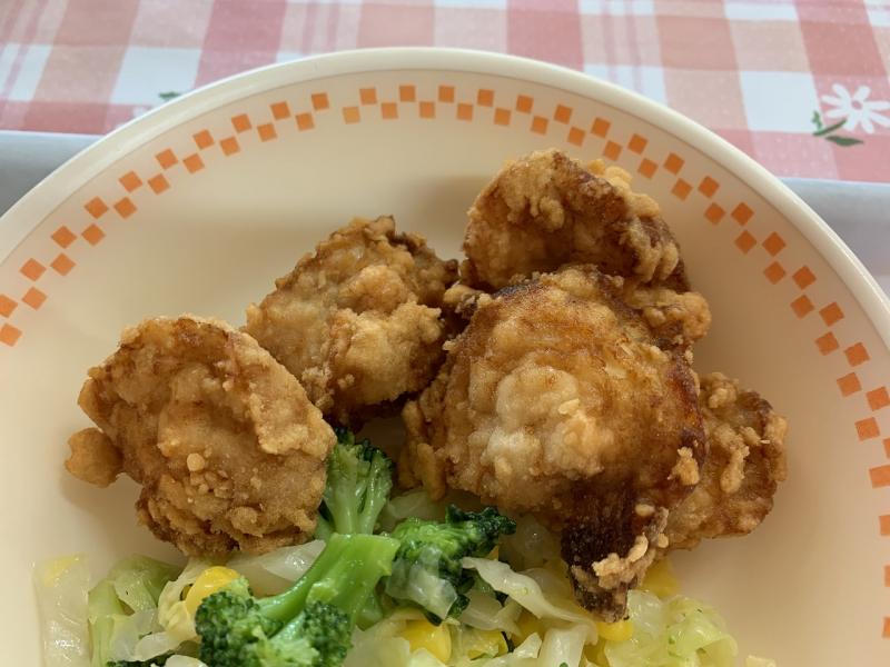 今年度4回目の「輪島ふぐ給食」です。今回も輪島市の農林水産課から無料でいただきました。下味にいしるを使ったから揚げです。しっかりした味でカリカリとおいしかったです。