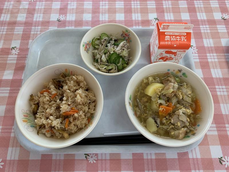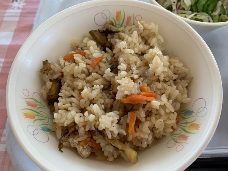 たっぷりの海女採りさざえで、ボリュームたっぷりのごはんになりましたが、みんな残さず食べてくれました。さざえの風味の効いたさざえごはんで、とてもおいしかったです。