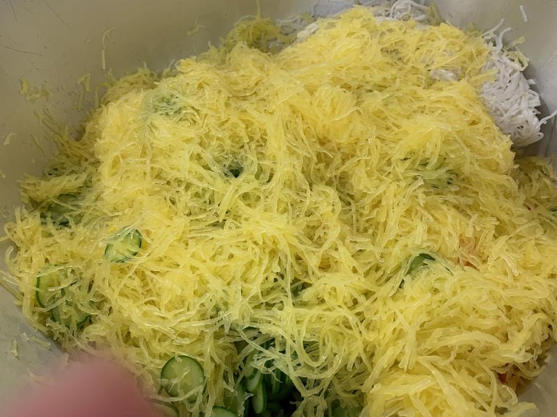 今日は、地元の農家さんの”そうめんかぼちゃ”を使ったそうめん南瓜サラダです。