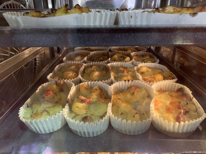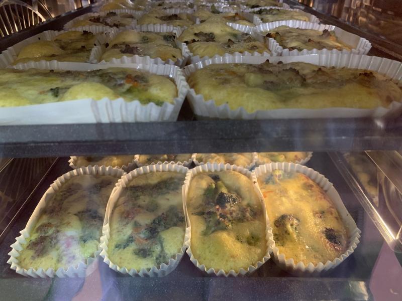 卵と牛乳を混ぜたものを注ぎ入れて、スチコンで蒸し焼きにします。