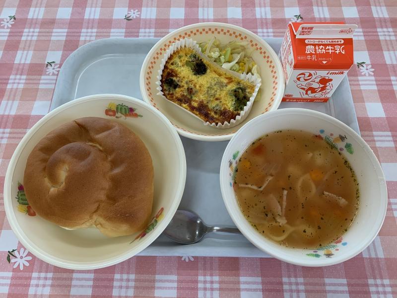 今日は、週に1度のパンの日で、チーズクッペでした。