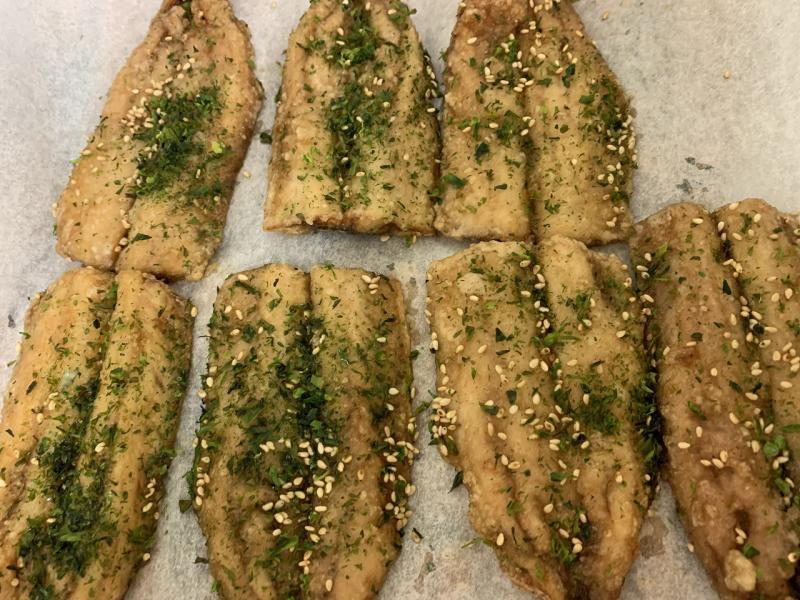 今日は、から揚げを作りました。青のりの香りが香ばしく、衣もカリカリでおいしかったです。