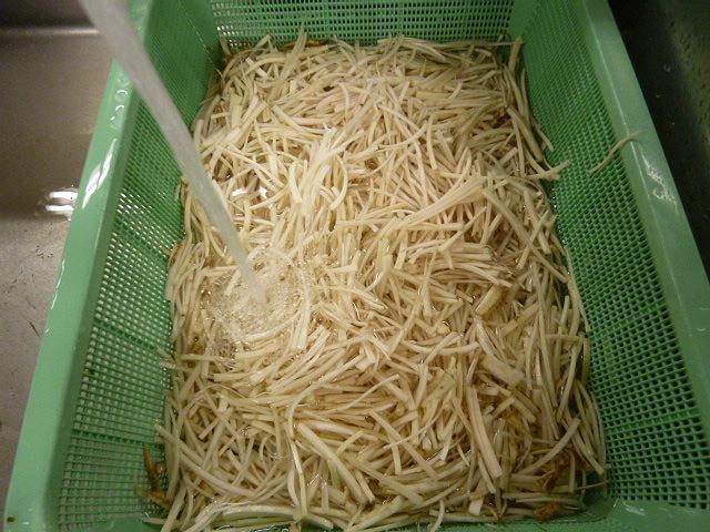 いつもは、機械でささがきに切っているごぼうを、今日は手切りで千切りにしてもらいました。