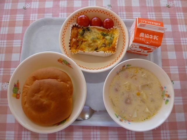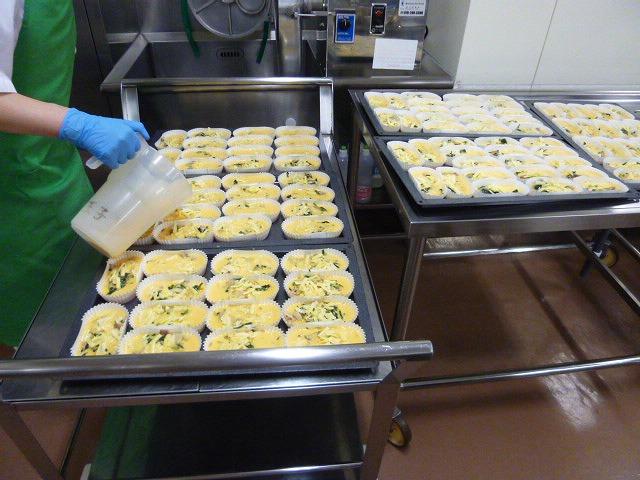 今日は、キッシュを給食室で手作りしました。