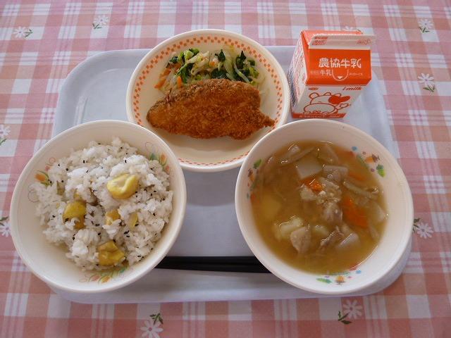 ゴロゴロと栗の入ったちょっと贅沢な栗ごはんでした。甘いおいしい栗で、塩加減もちょうどよく、おいしかったです。