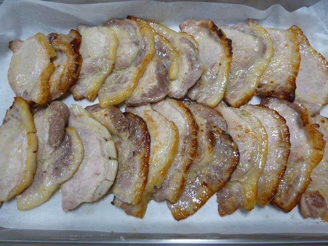 その糀に、みりんと酒を加えてのばしたものに、豚肉を漬けておき、オーブンで焼きました。