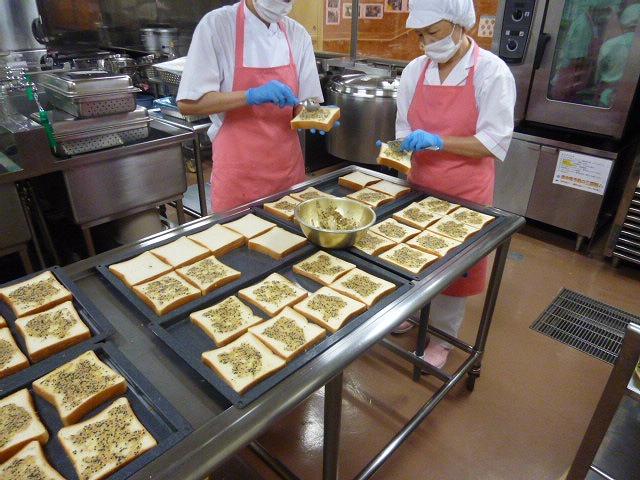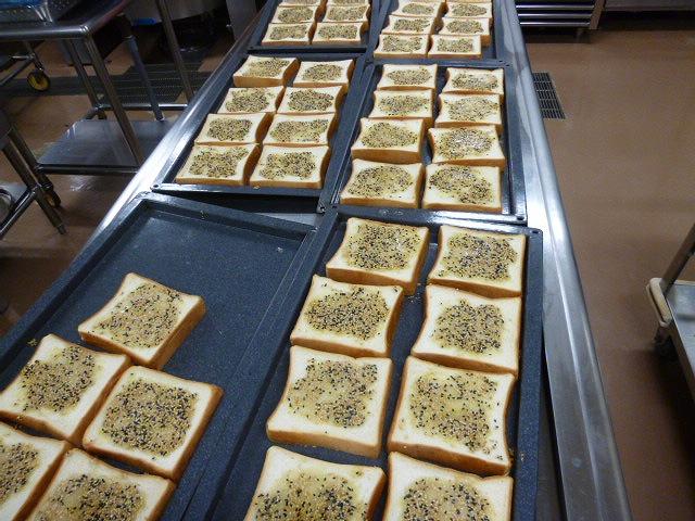 今日は、白ゴマと黒ゴマ、バターと砂糖を混ぜたペーストを塗って焼いたごまトーストでした。