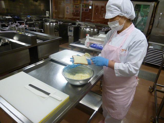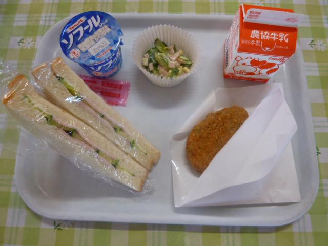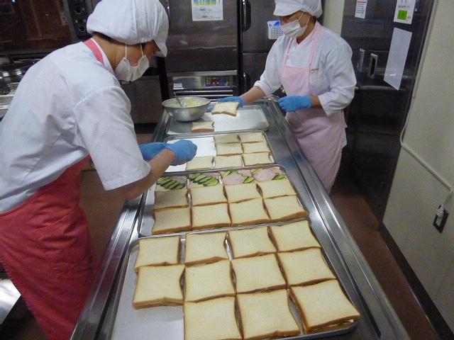 サンドイッチにはさむ、ハムもきゅうりも、給食では熱を通しています。