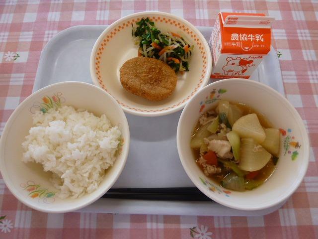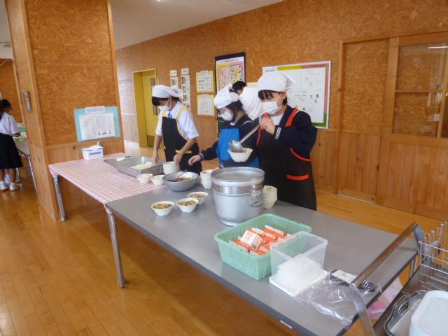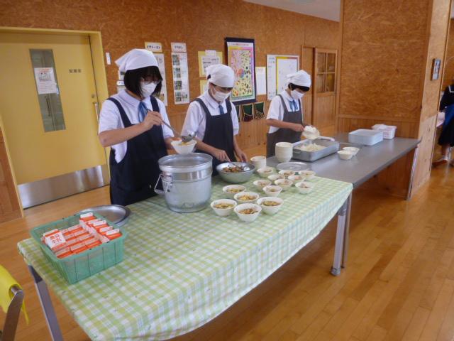 給食当番も、手洗い、健康観察をしっかりして配膳を行いました。
