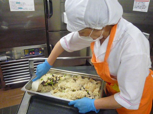 いつもはごはんを委託して炊いてもらっていますが、今日は、去年、生徒が収穫したうるち米を使って