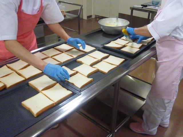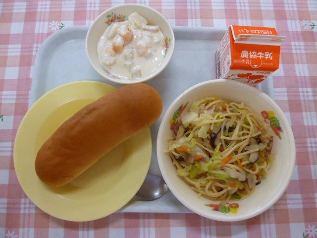 和風スパゲティーなど、パンと麺を合わせたメニューの時は、パンの大きさを小さくして調節しています。