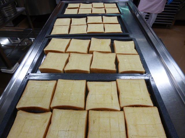 手づくりハニーペーストが染み込みやすいように、パンには格子状に切り込みを入れてあります。