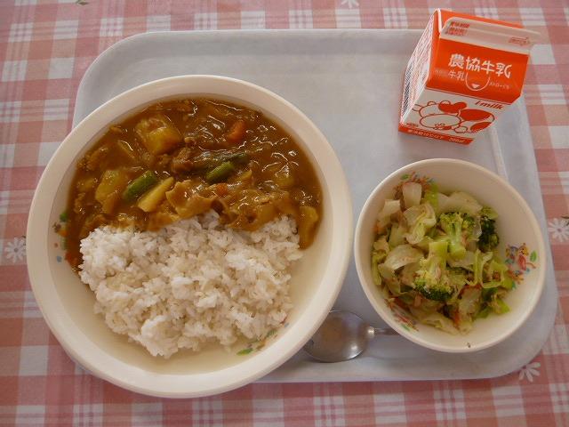 今日は、約2カ月ぶり、1年生は中学校で初めてのカレーライスでした。