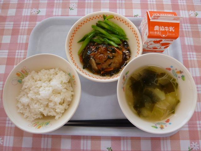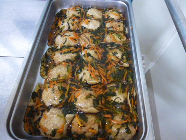 今日は干しシイタケのだしの効いた、野菜ソースをかけた「手作り和風ハンバーグ」でした。