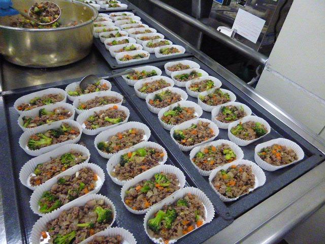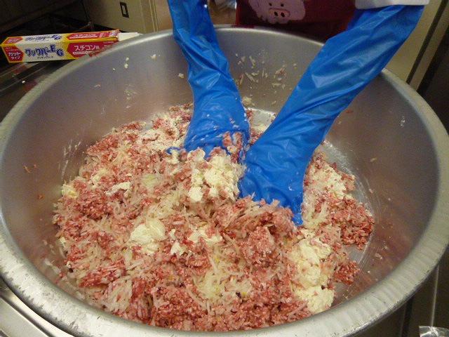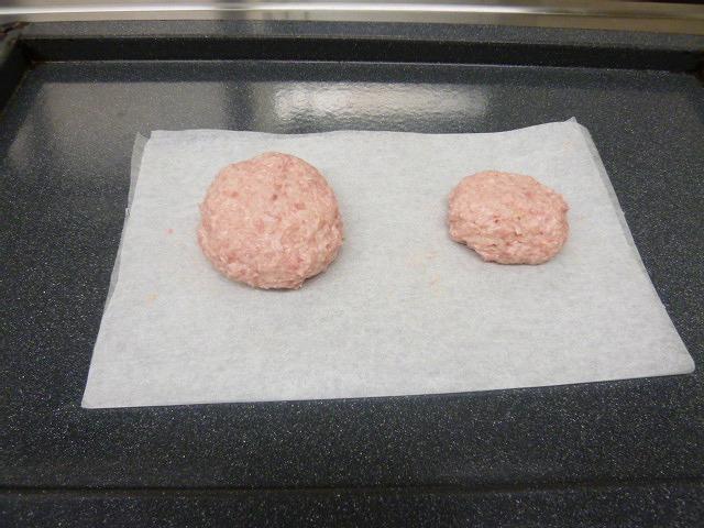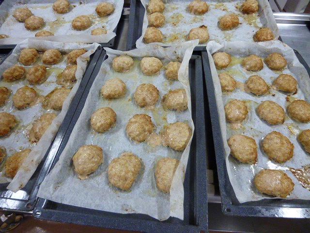 真ん中の写真は、卵アレルギー対応の卵抜きのハンバーグです。卵が混ざってしまうと大変なので、一番先につくります。