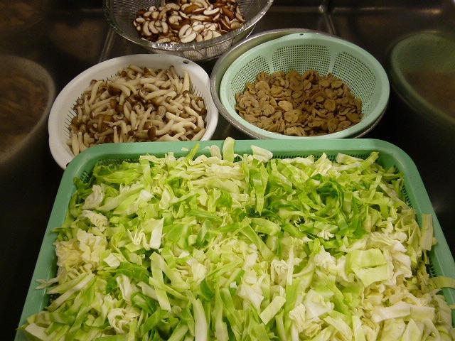 和風スパゲティーには、キャベツや玉ねぎ、しめじ、しいたけなど野菜やきのこがたっぷり使われています。