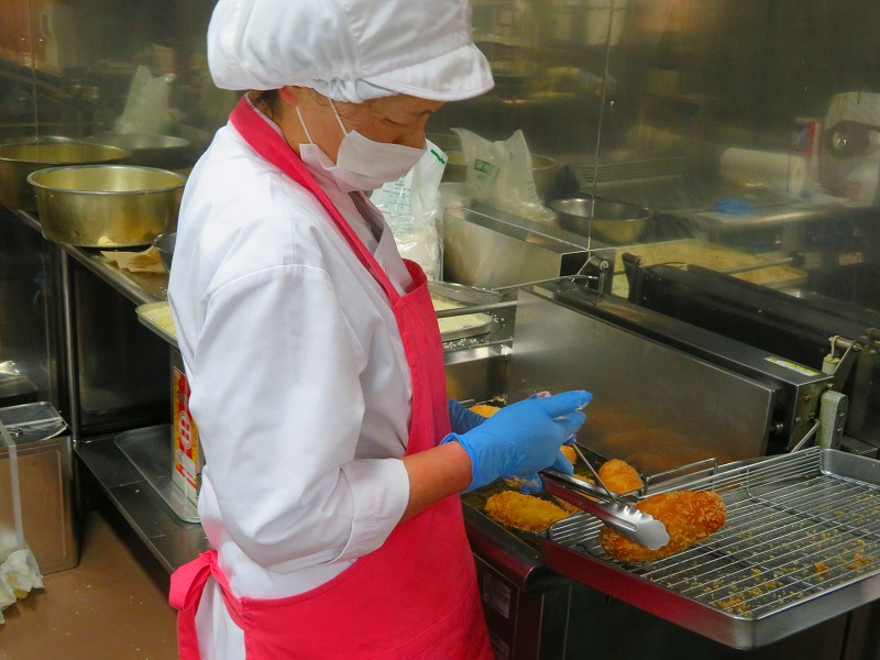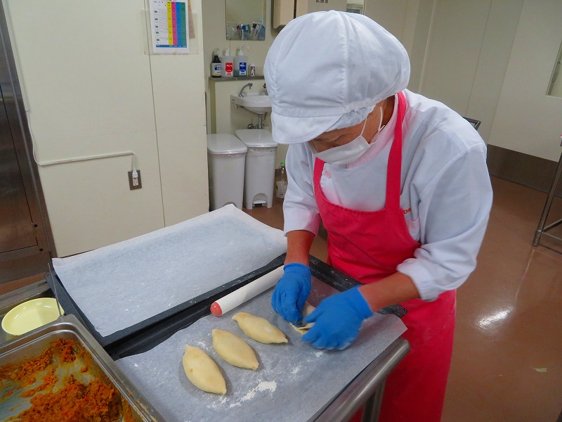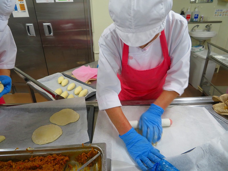今日は初めて生地からカレーパンを作りました。調理員さんは、何度も試作
