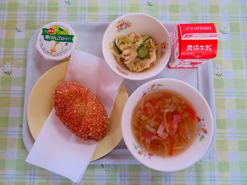 今日はクリスマスイブなので、少しクリスマス気分を味わえるような給食