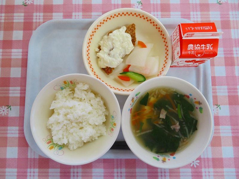 と合わせて食べました。給食のタルタルソースは具はたまねぎのみでさっ