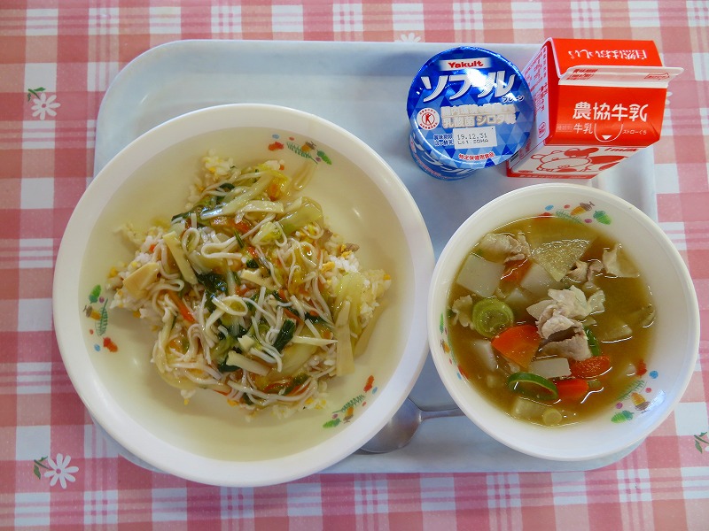 切り干し大根のぴりからいためも給食の定番メニューですが、ぴりから