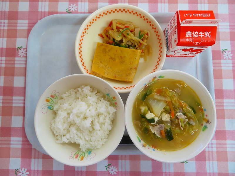 生徒たちは、今日の給食がお気に入りだったようで、特に厚焼きたまご