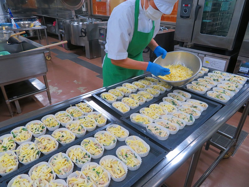生徒たちの大好きなハンバーグですが、ハンバーグの日の給食室は大忙し