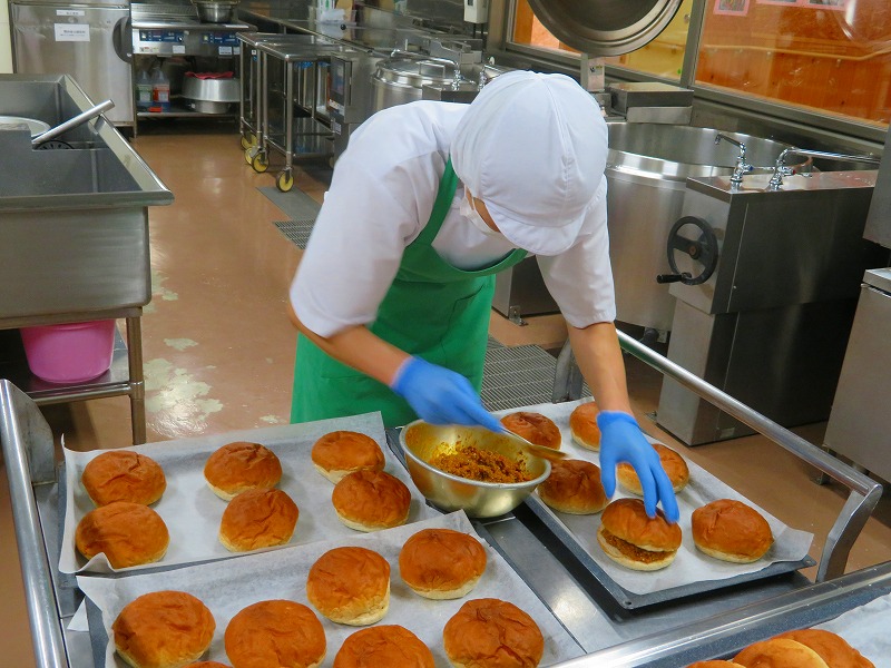 今日は、焼きカレーパンを作りました。カレー味の具を作り、パンに