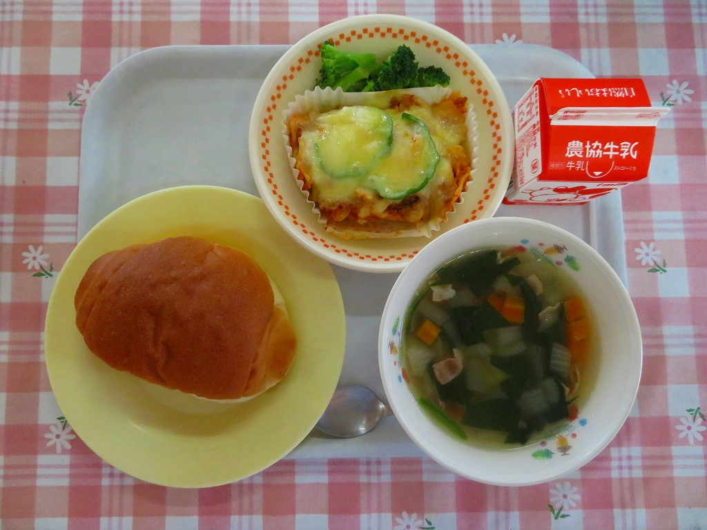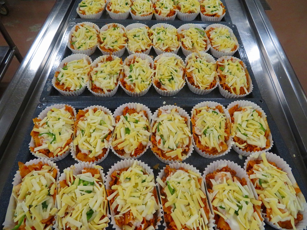 最後にチーズをのせて焼きます。今日は残食もなく、食べ終わるのも早か