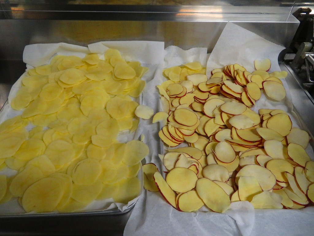 今日はじゃがいも・さつまいも・れんこんの野菜チップスを作りました。