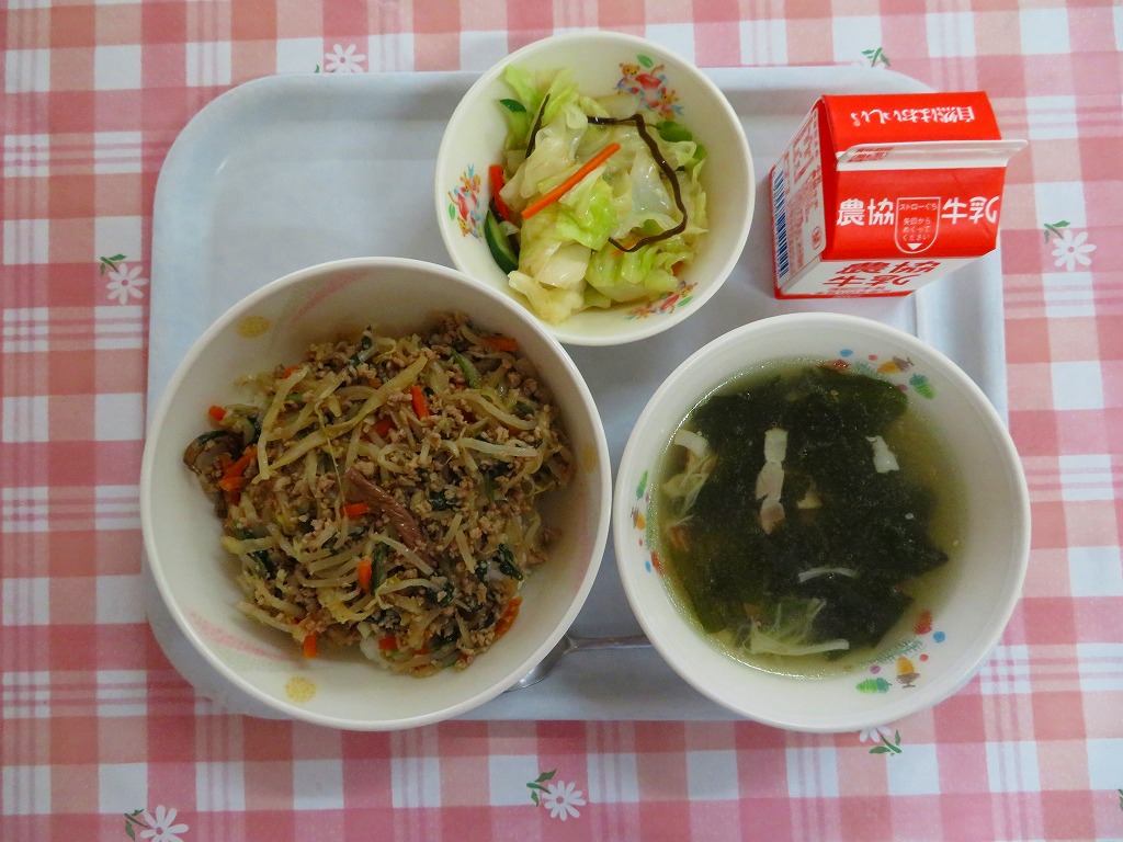 給食のビビンバは子どもたちにとって食べやすい味付けにしていますが、