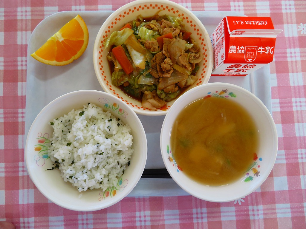 を変えて給食に登場しています。今日は、キムチを加えてピリ辛炒めに