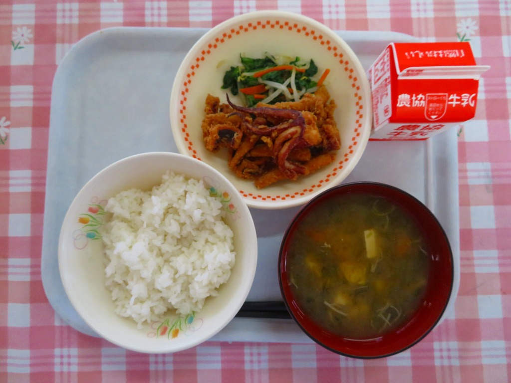 子どもたちに人気がある献立の一つです。給食で使用しているいかや