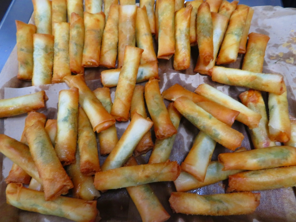 3人がかりで時に励まし合いながら春巻きを作りました。カリっとおいしく