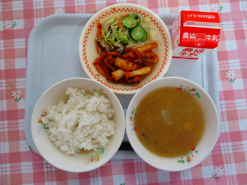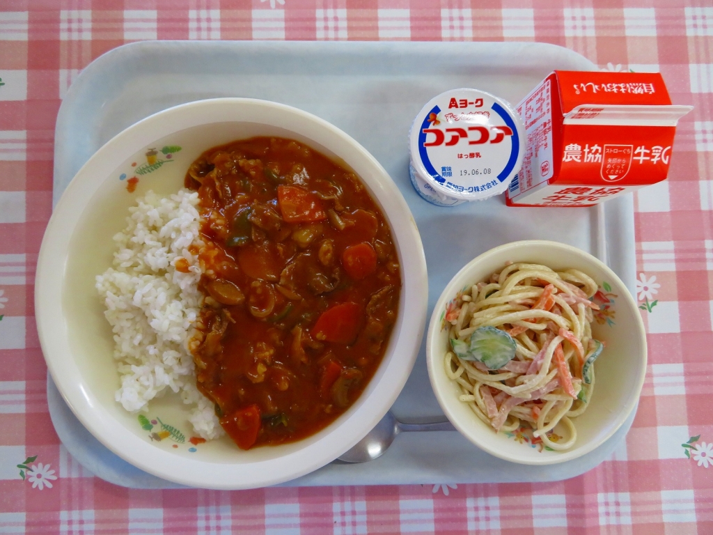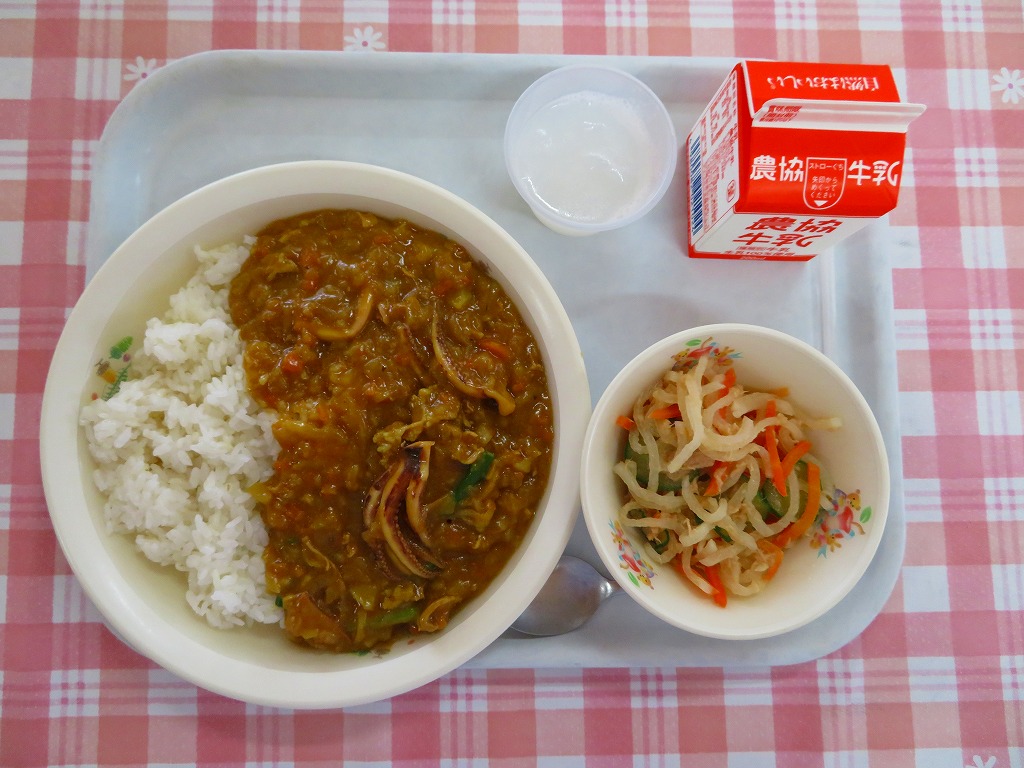 2019年6月11日 19時05分今日は地場産物のいかとアスパラガスを入れたカレーにしました。