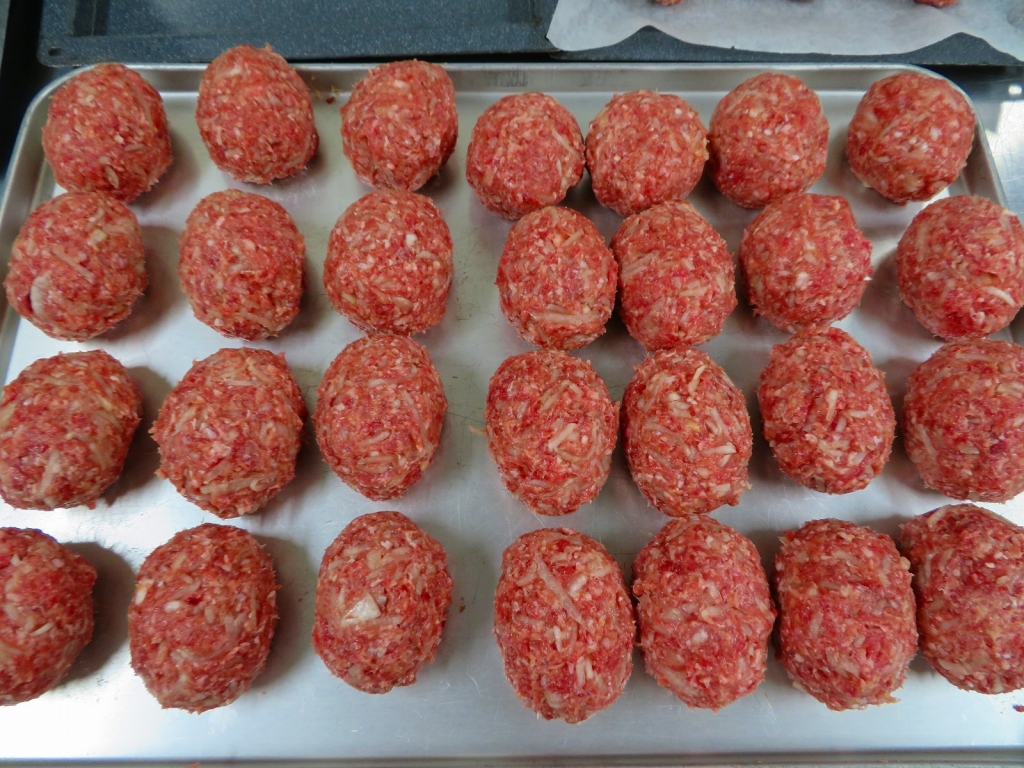 ゆでたまごを作り、ひき肉で包んで作ります。