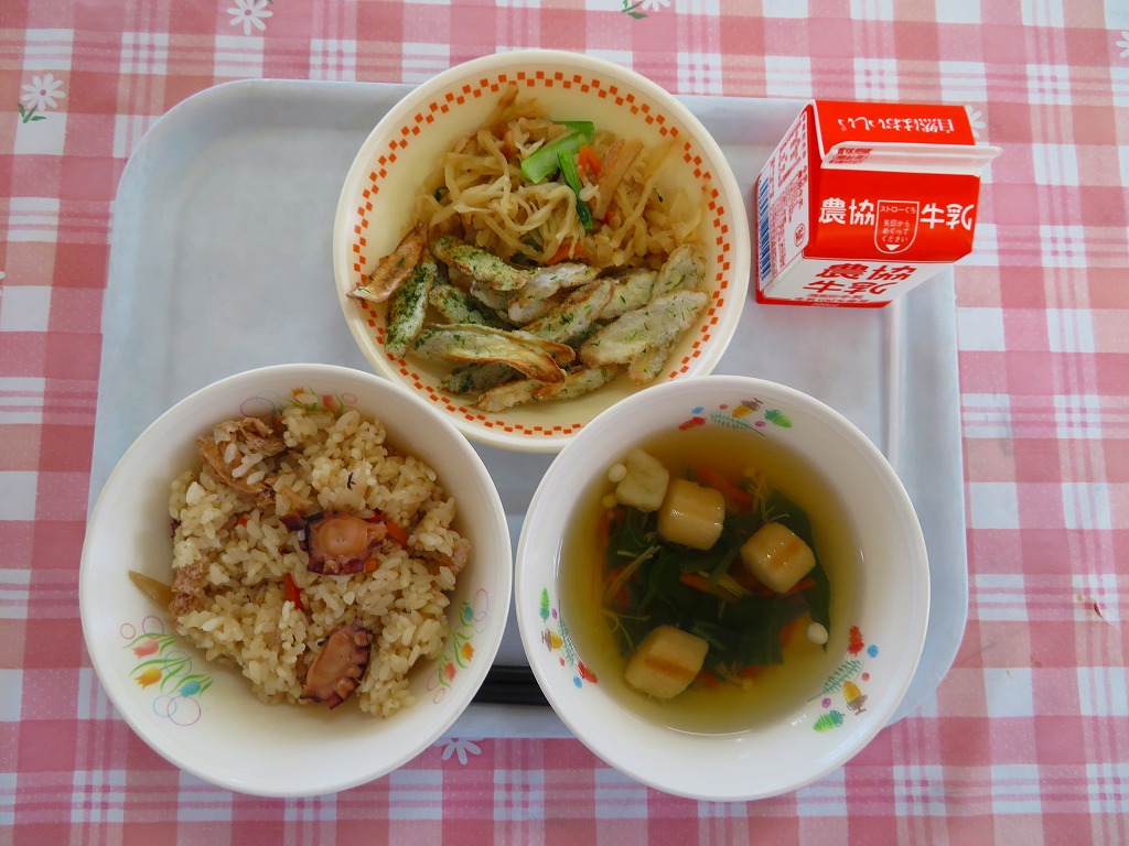 今日は噛むことを意識してもらうために、たこ・ごぼう・切り干し大根