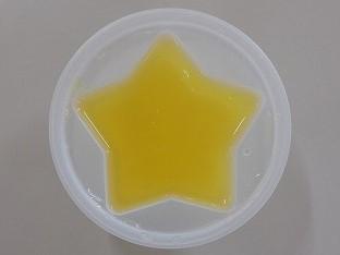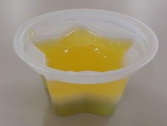 「国産メロン果汁ゼリー」「豆乳風味のゼリー」「国産夏みかん果汁のゼリー」を三層に重ねた星形のゼリーを取り入れています。