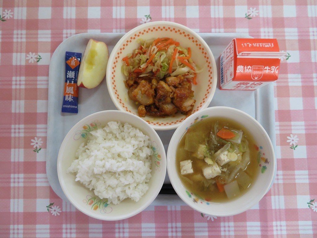 今日は「岐阜県給食」です。けいちゃん焼きは鶏肉をみそ・しょうゆなどを