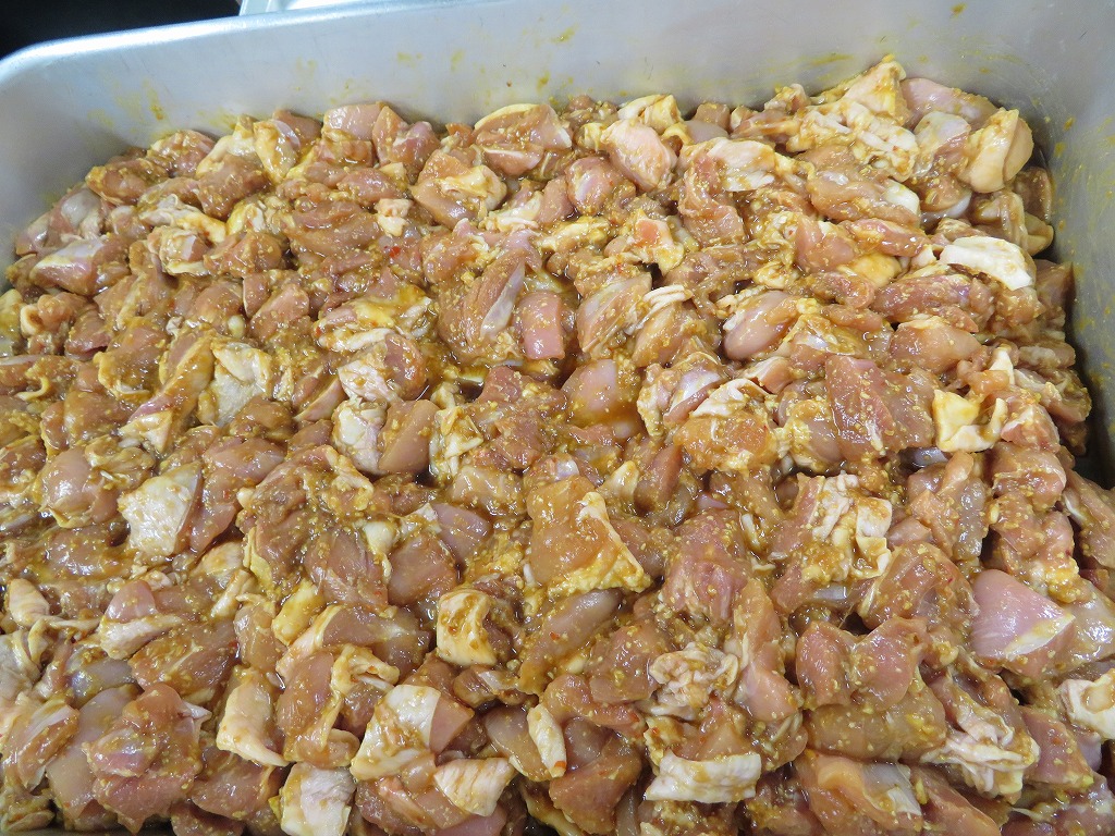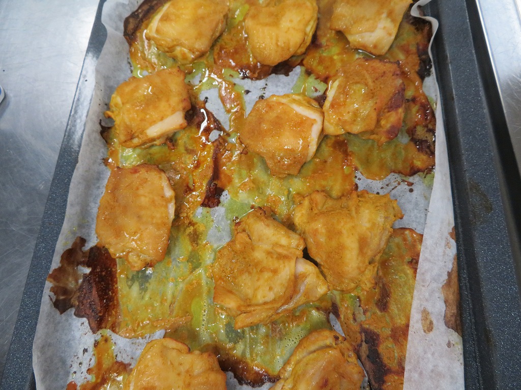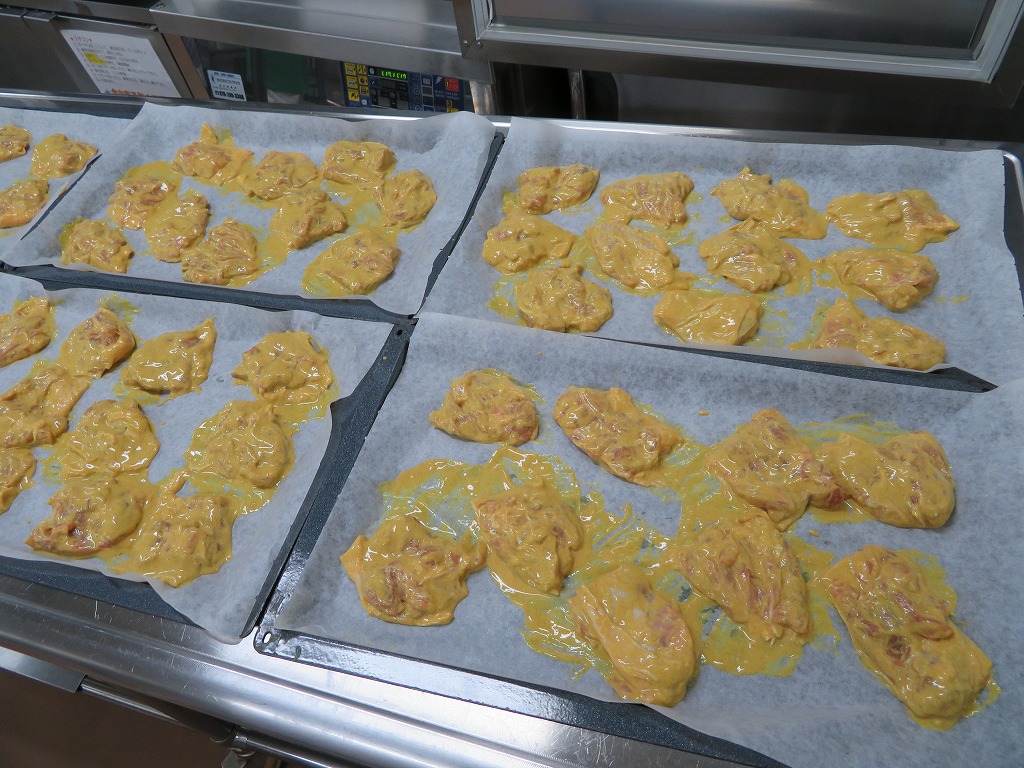 つけ、カレー粉とヨーグルトに漬け込んでおき、オーブンで焼きます。