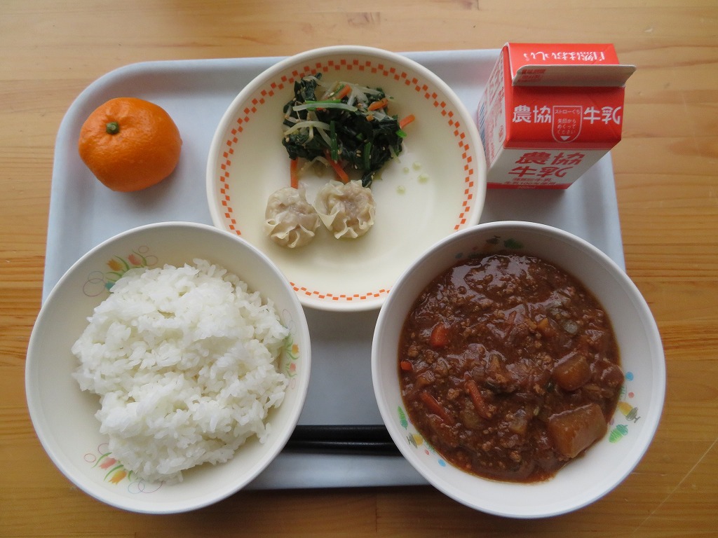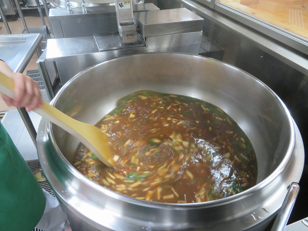マーボ豆腐は給食の定番メニューですが、今日はマーボ大根にしました。