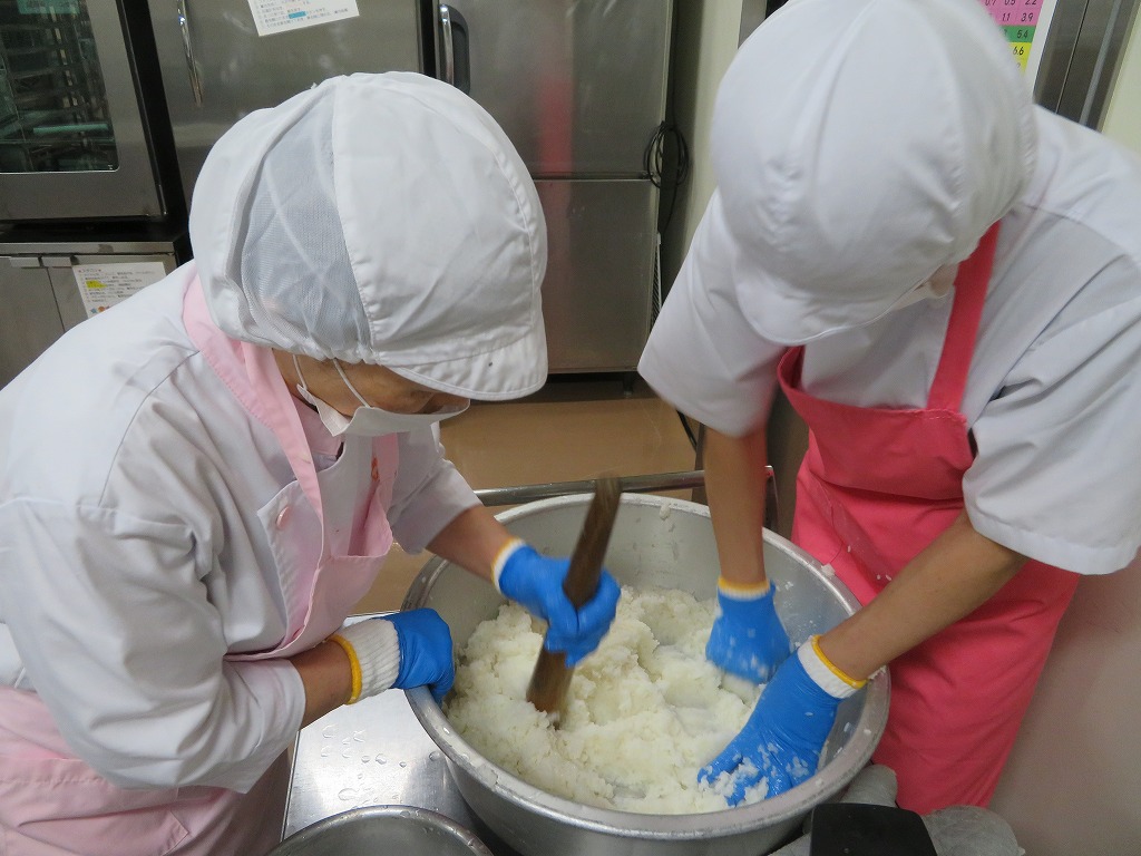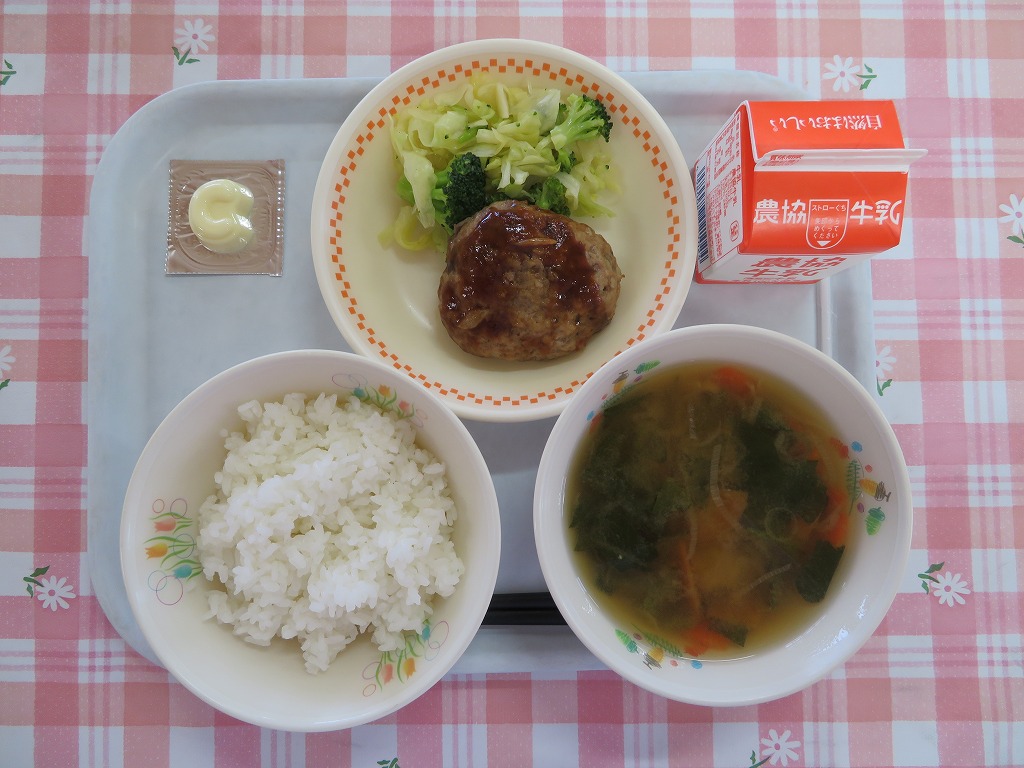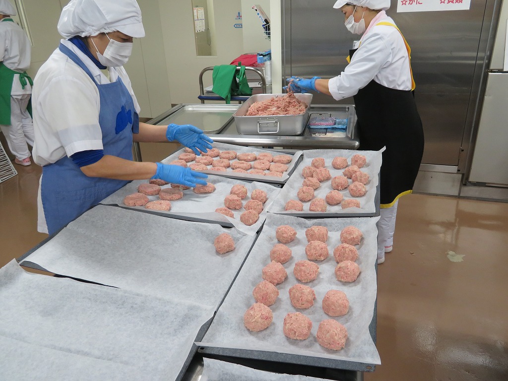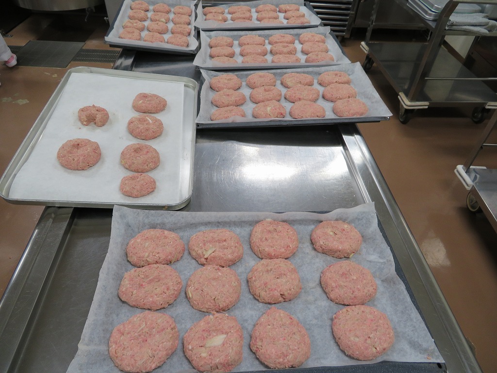 今日はハンバーグを作りました。給食のハンバーグは、絹豆腐とひき肉を