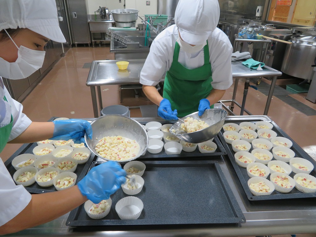 焼き菓子です。今日は、給食でできるようアレンジして作ってみました。