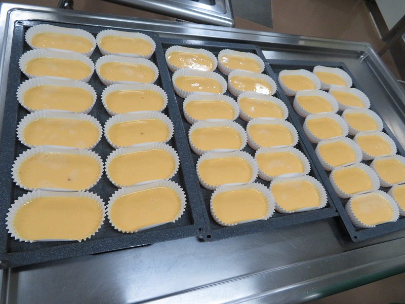 混ぜ合わせ、カップに流し入れて焼きました。