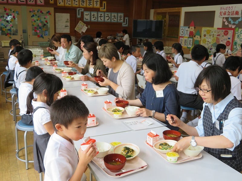 普段は学年別に給食を食べているのですが、今日は部活動別に