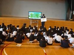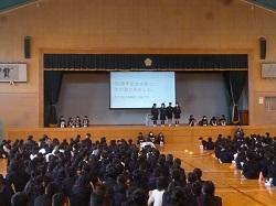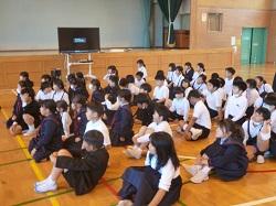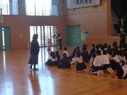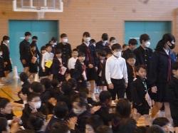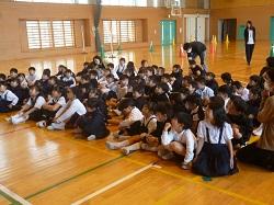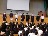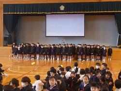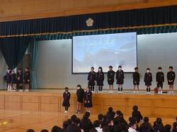 ピアノ伴奏に合わせて、校歌を歌いました。元気いっぱいの歌声が体育館に響き渡りました。