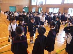 今日の昼休み時間に、「なかよし班」の発足式がありました。