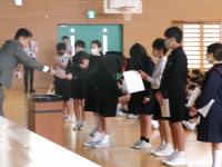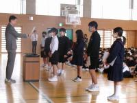 最後に任命式が行われました。津幡小学校には、8つの委員会があります。これら委員会のメンバーである5、6年生のおかげで、毎日気持ちよく、楽しく過ごすことができます。任命式では、8名の委員長に、任命書が校長先生より手渡されました。