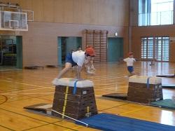 マット運動・鉄棒運動・跳び箱運動に取り組んでいます。