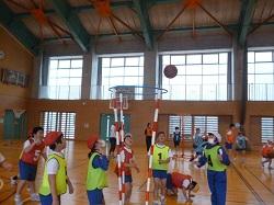 4年生は、体育の時間にバスケットボールに取り組んでいます。